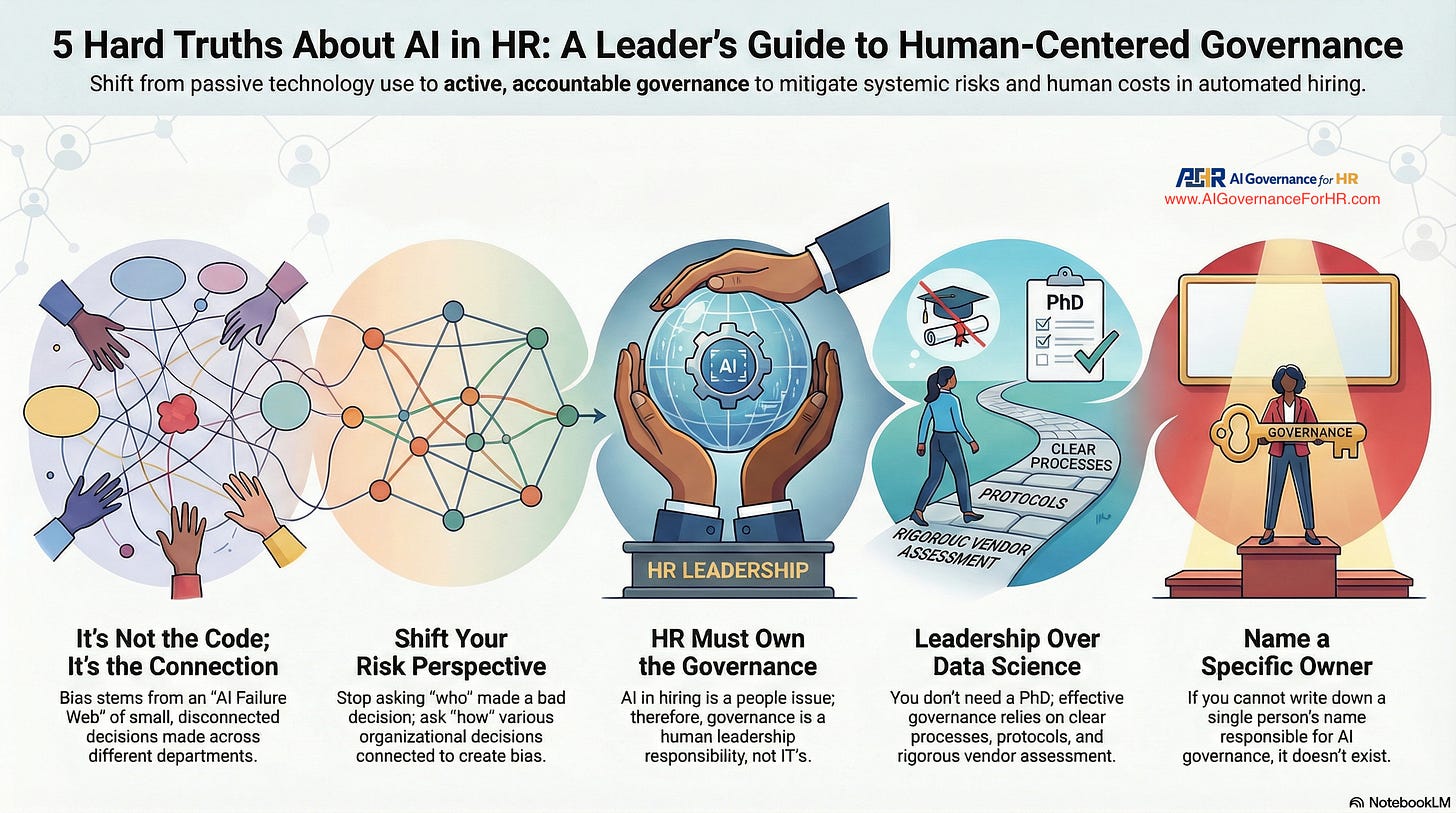 Here is a simple, stark reality check: Who in your organization is responsible for AI governance in talent-level solutions? If you cannot name a single person, effective governance does not exist. When responsibility is diffuse, “everyone and no one” is accountable, leaving your organization without a safety net.