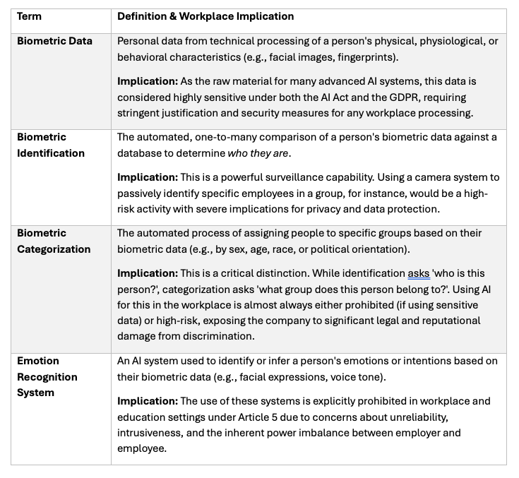 The Act pays special attention to technologies that process human characteristics. Understanding these distinctions is crucial because their use is heavily restricted.